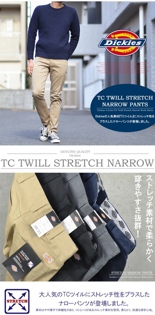 【送料無料】Dickies(ディッキーズ)TCツイルストレッチ 5ポケット テーパードパンツ チノパンツ ワークパンツ メンズ 153M40WD34 163M40WD22 173M40WD21 【楽ギフ_包装】